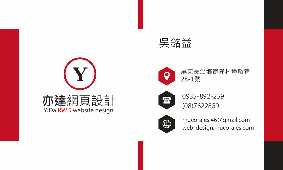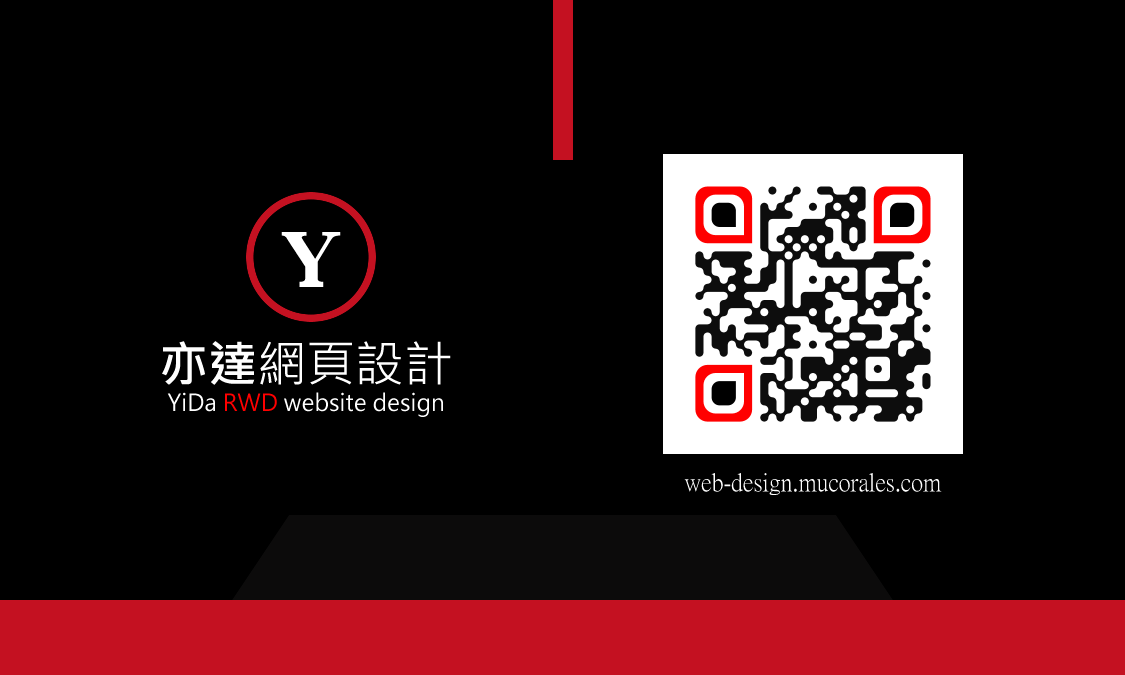 這是亦達公司的名片,正反兩面一黑一白,CIS配色以黑配紅,為公司主要的形象配色。