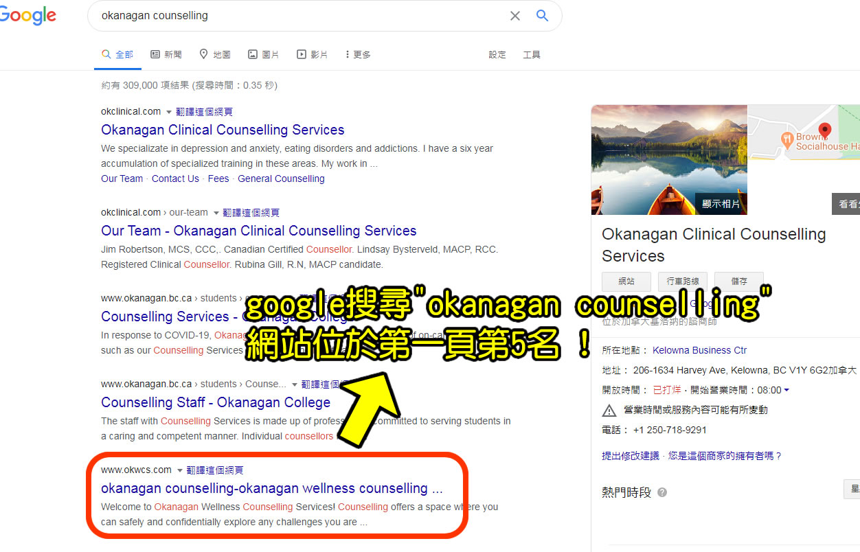 (不到半年)網站已經在第一頁第五名了